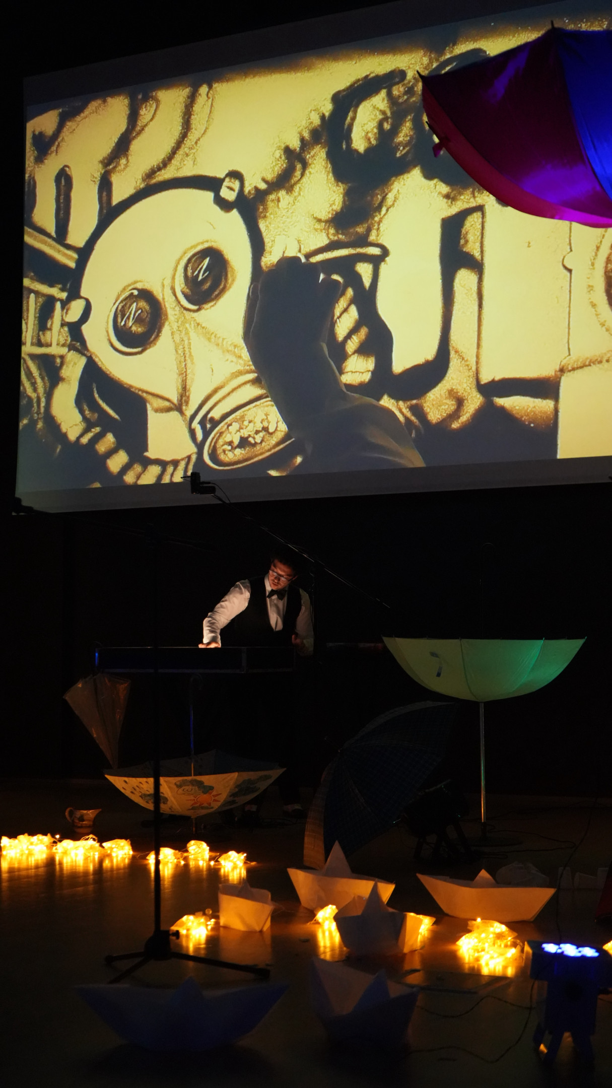 Protagonista dello show è Sabbiolino, un abitante di una città riarsa e ostile in cui gli ombrelli, non vengono più usati per proteggersi dalle gocce di pioggia, ma per raccoglierle gelosamente.