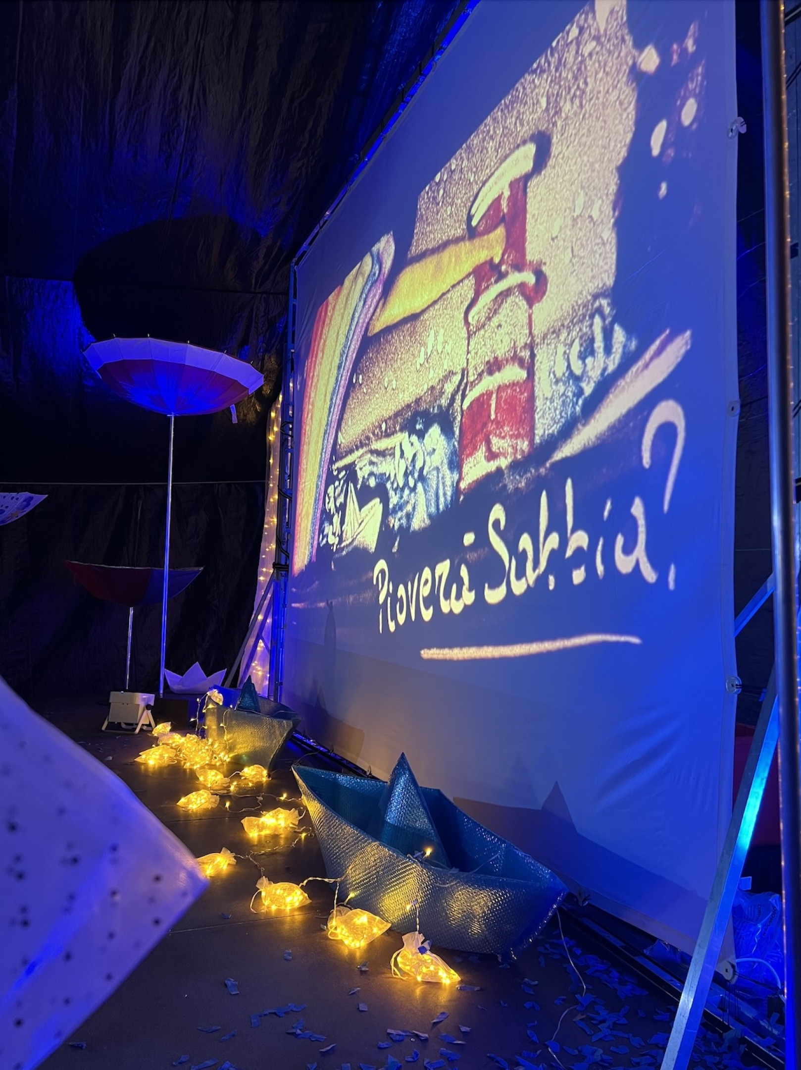 Uno spettacolo che vuole spronare tutti gli spettatori ad agire perchè il futuro in cui abita Sabbiolino, non diventi mai realtà.