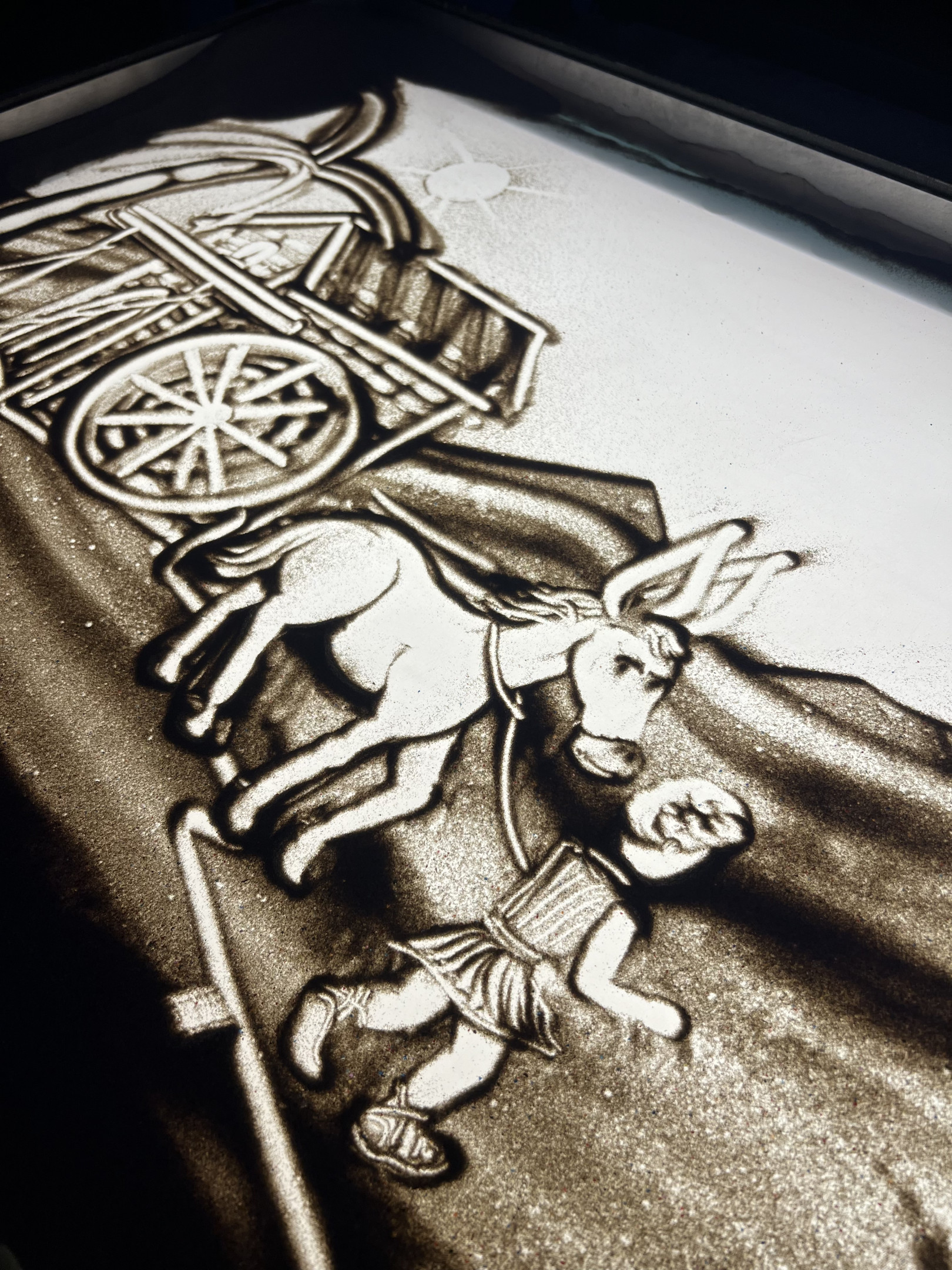Proprio quando la speranza sembra essersi spenta e Navin sta per arrendersi al tragico destino di Scricciolo, appare una coppia di viandanti. Hanno saputo della ricerca di una casa per l'asinello. La coppia deve affrontare un lungo e faticoso viaggio verso Betlemme, e la donna è incinta. L'aiuto di Scricciolo, seppur anziano, è per loro una risorsa preziosa.