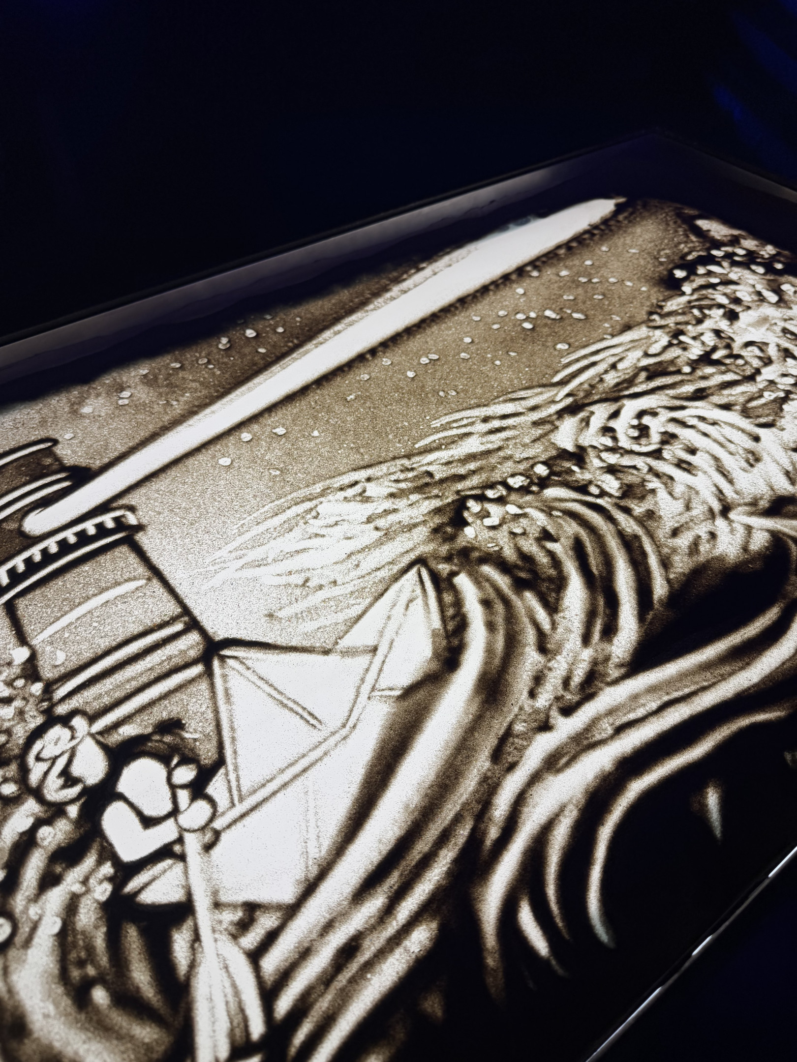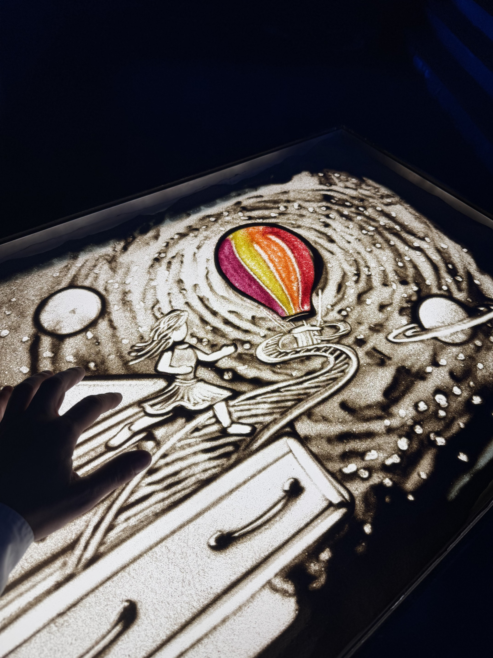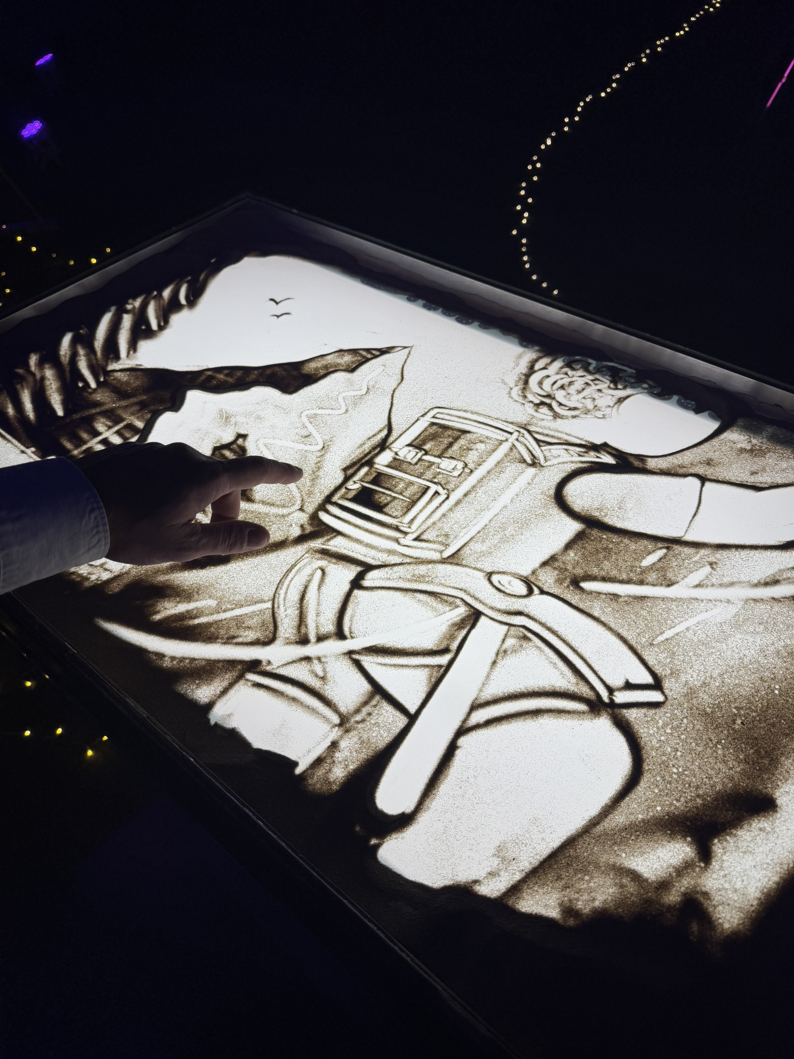 Uno spettacolo motivazionale di disegni con la sabbia, per spronare gli spettatori a non arrendersi mai davanti alle difficoltà, a trovare il coraggio di iniziare nuove avventure.